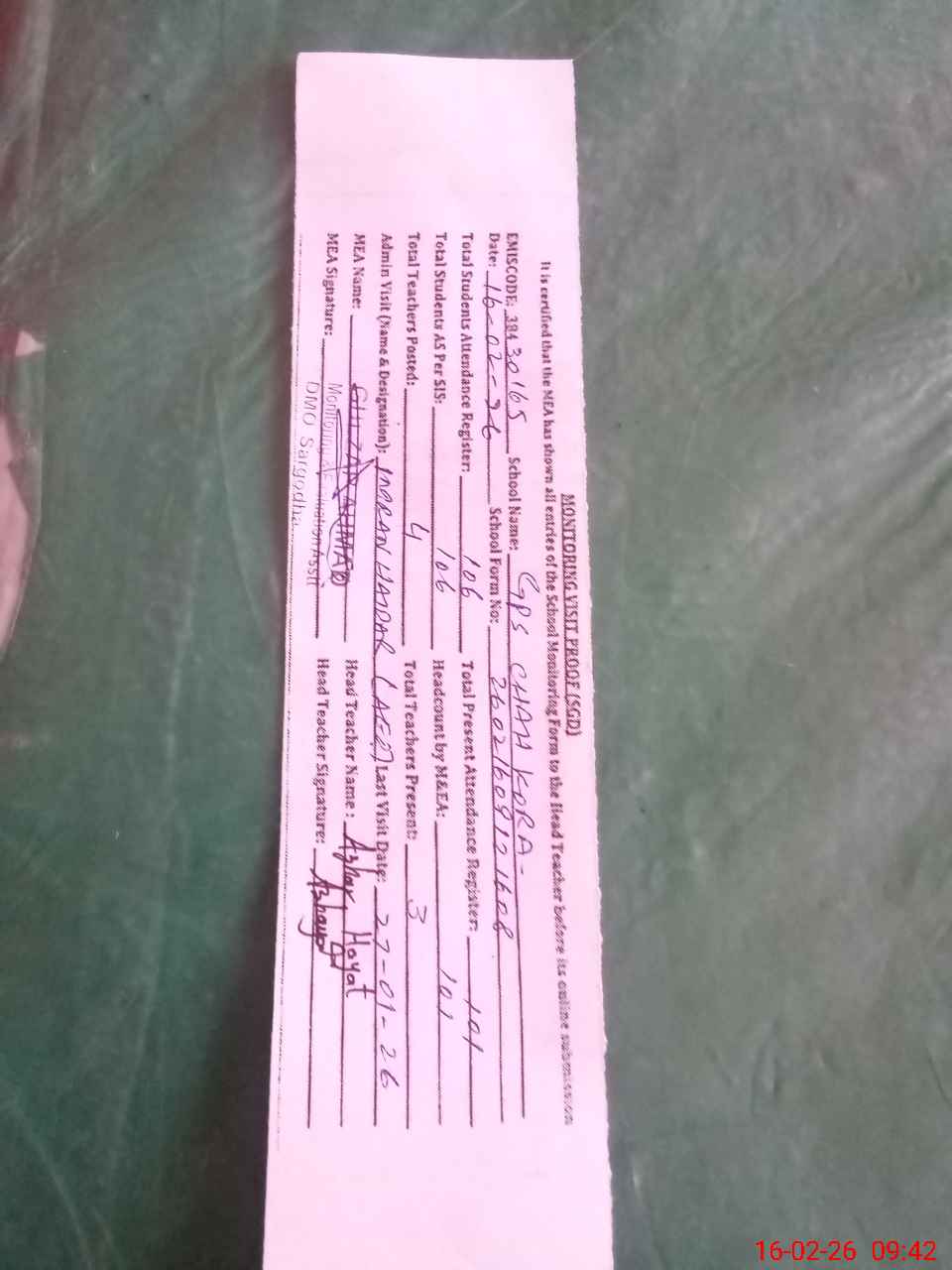 | EMIS Code: 38430165 | Name of School: GPS CHAH KORA | |||