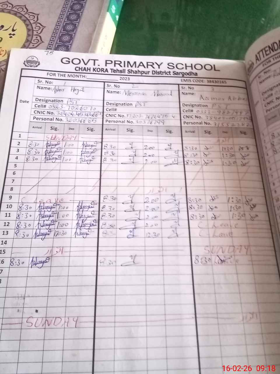 | Name: AZ**** HA**** Designation: (School Headmaster's/Headmistress's) PST Phone/Cell Number: 03**** |