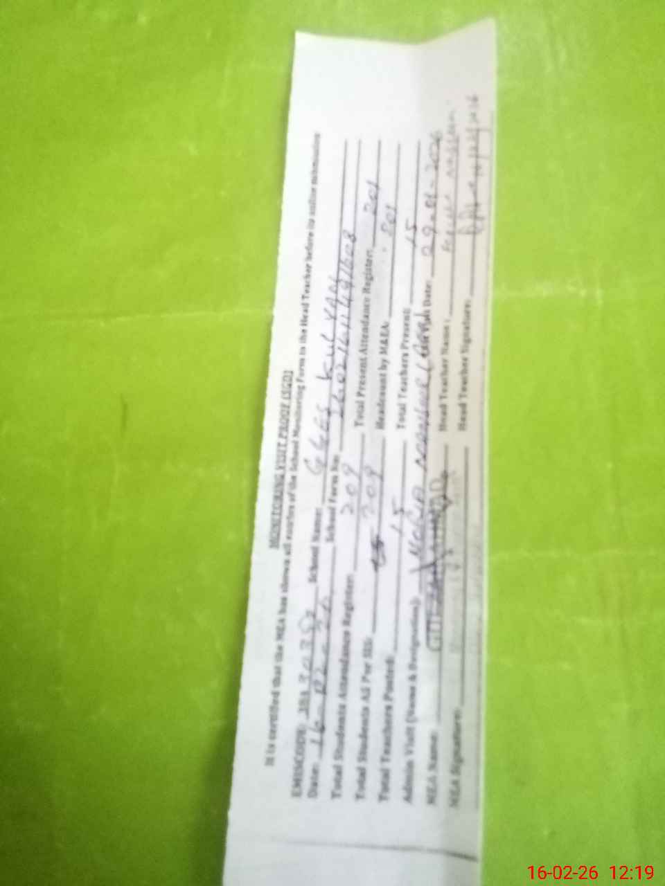| Attendance Register | Head Teacher | MEA with School | Visit Proof |