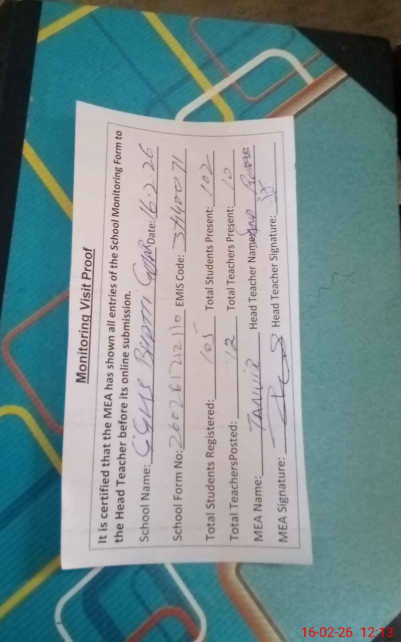 | EMIS Code: 37440071 | Name of School: GGHS BHATTI GUJJAR | |||
