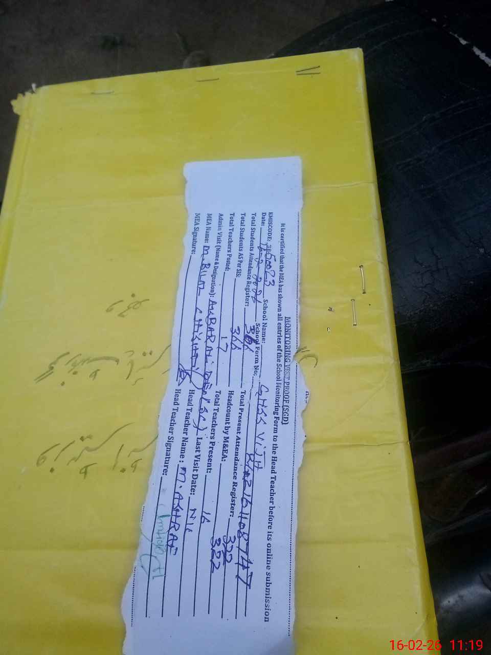 | Attendance Register | Head Teacher | MEA with School | Visit Proof |