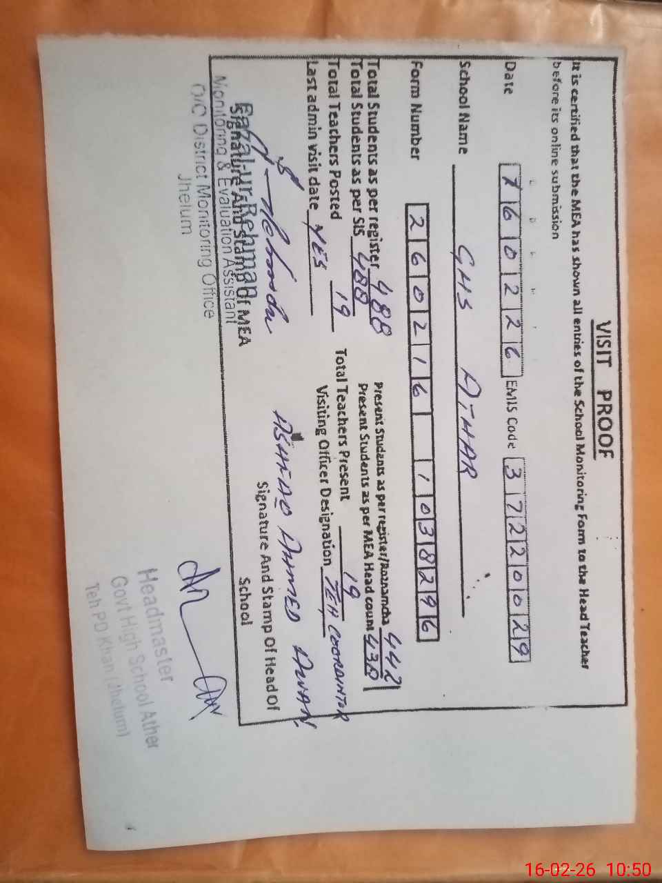 | EMIS Code: 37220029 | Name of School: GHS ATHER | |||