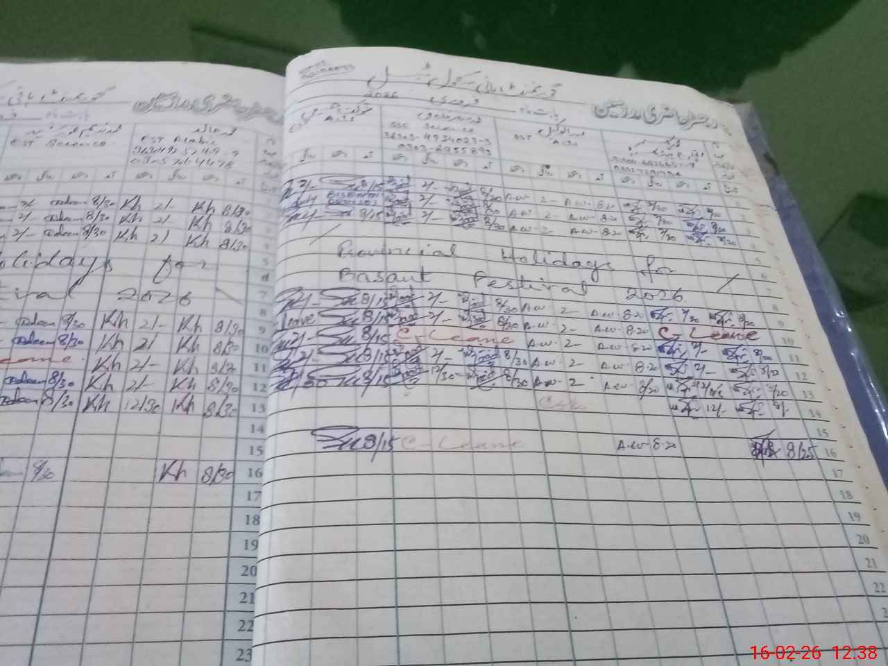 | Leave | Duty | Absent | Maternity | Medical | Ex- Pak |