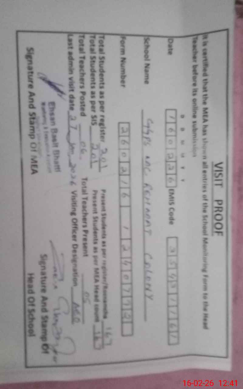 | EMIS Code: 35431161 | Name of School: GGPS MC REHMAT COLONY | |||