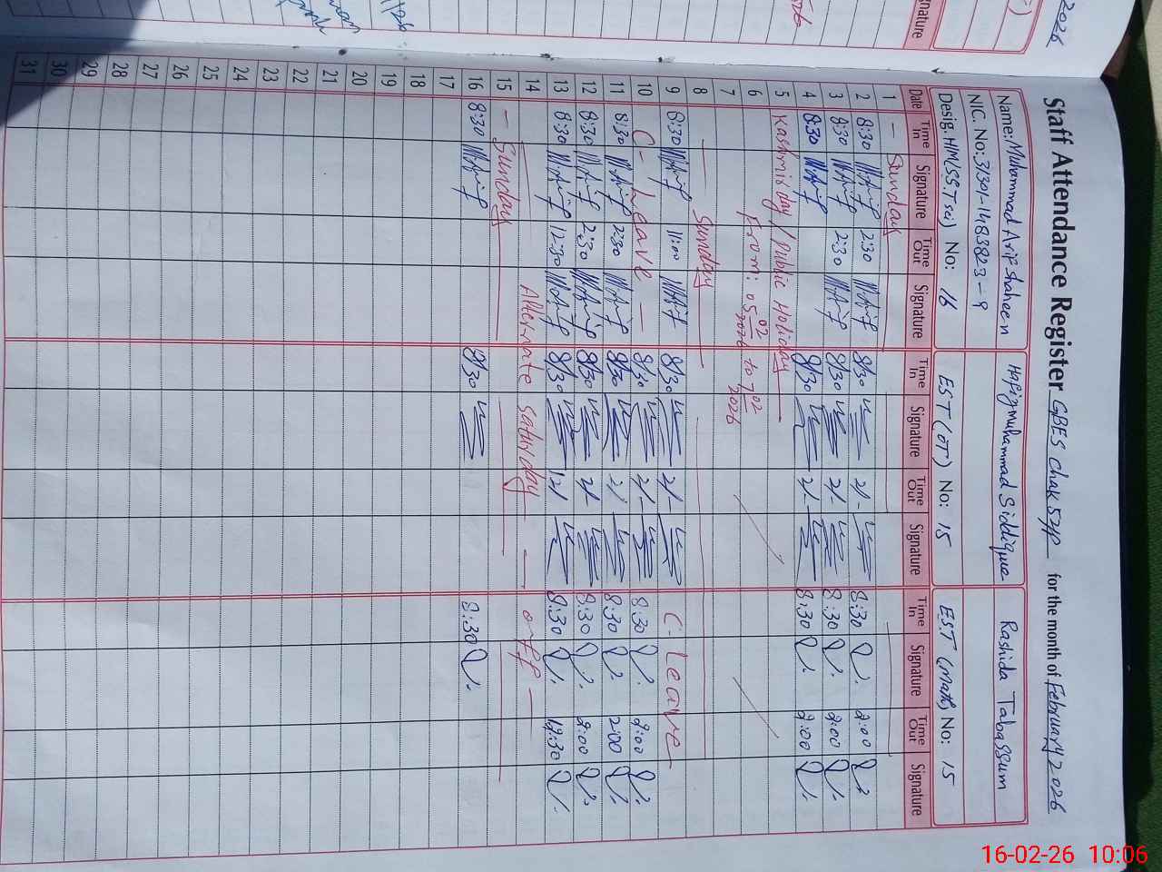 | Name: Mu**** Ar**** Sh**** Designation: (School Headmaster's/Headmistress's) S.S.T Science Phone/Cell Number: 03**** |