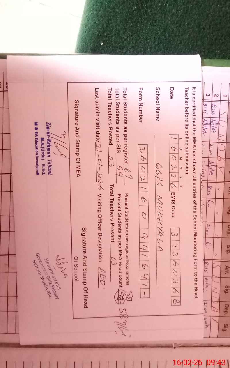 | EMIS Code: 37360368 | Name of School: GGPS MUKHYALA | |||