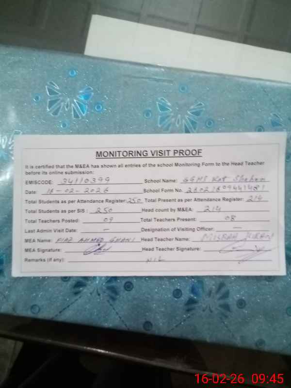 | EMIS Code: 34110399 | Name of School: GGHS KOT SHAHAN | |||