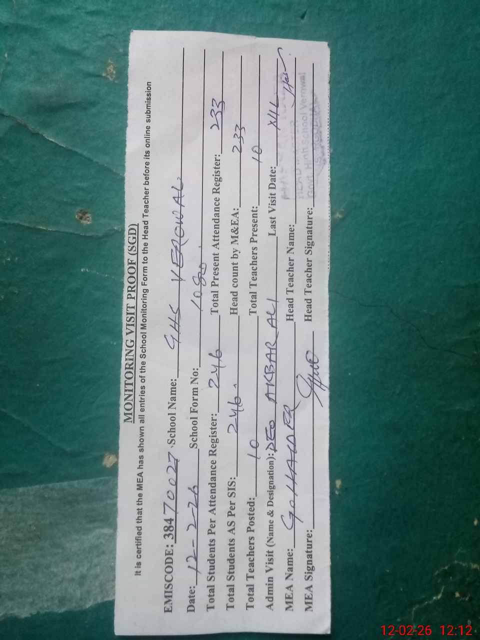 | EMIS Code: 38470027 | Name of School: GHS VERO WALA | |||