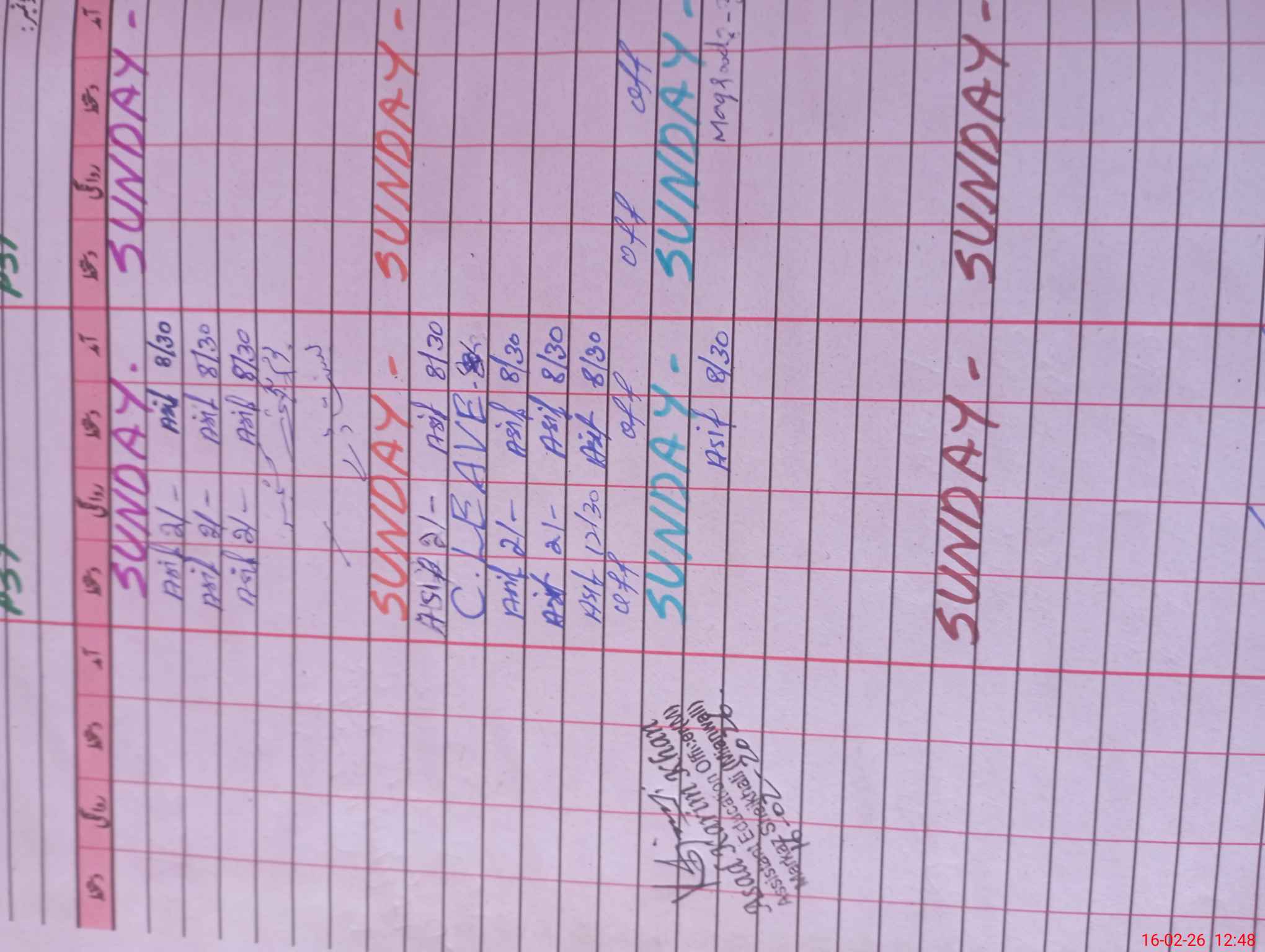 | Leave | Duty | Absent | Maternity | Medical | Ex- Pak |