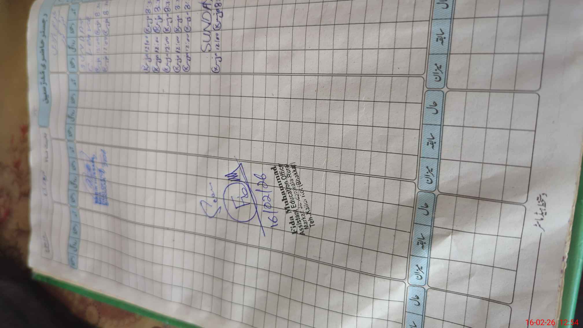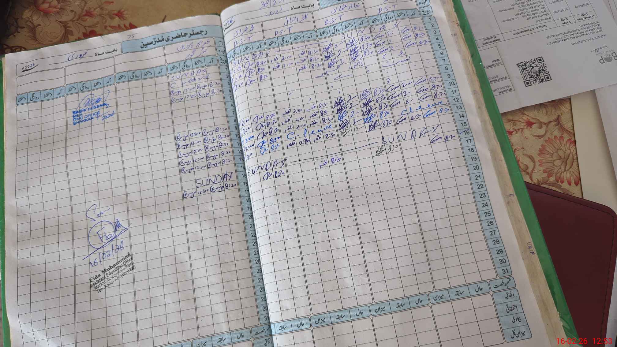 | CNIC | Full Name | Designation | R/C | Absence During Last Calender Month |