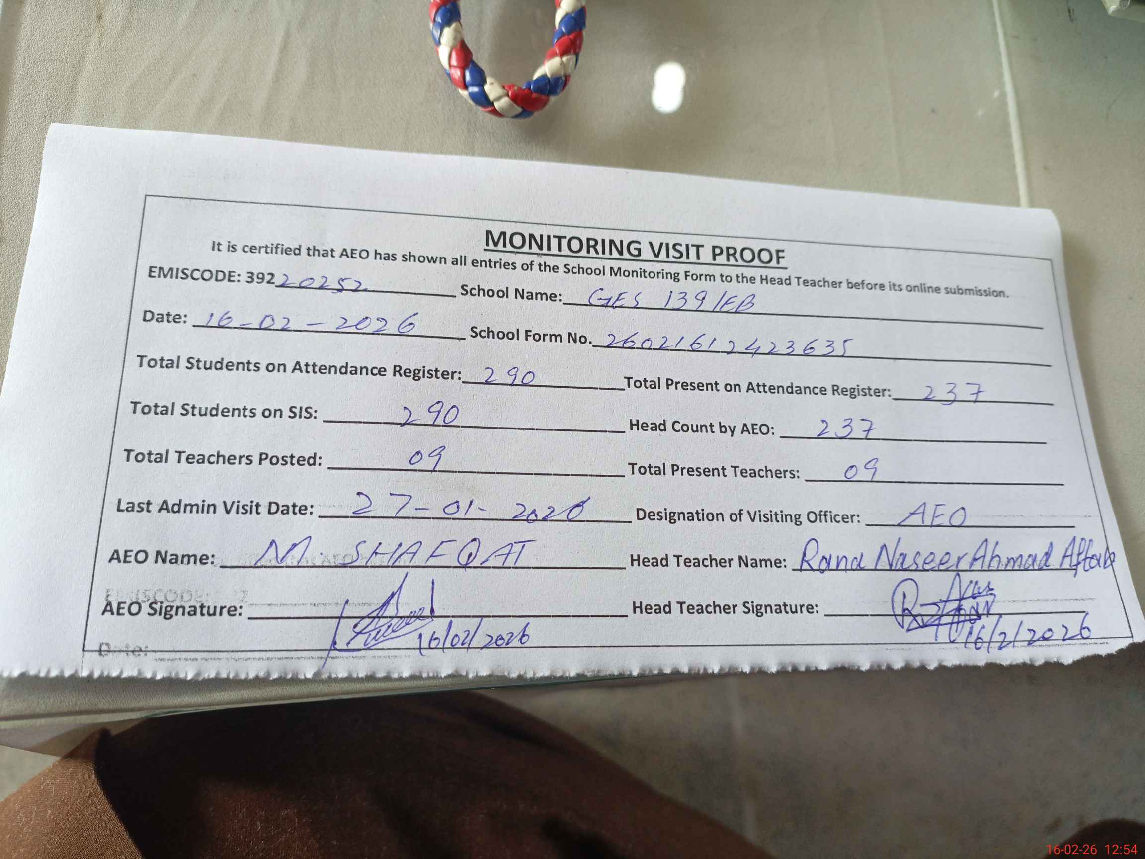 | EMIS Code: 39220252 | Name of School: GES CHAK NO 139 EB | |||