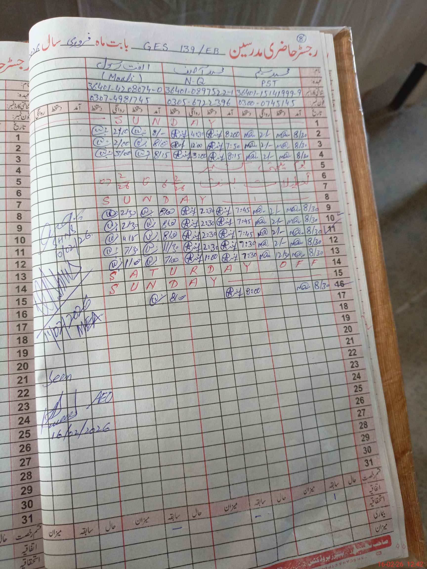| Monitoring Date: 16-02-2026 | Start Time: 16-02-2026 12:13 PM | End Time: 16-02-2026 12:54 PM | Name of MEA: Mu**** Sh**** | |