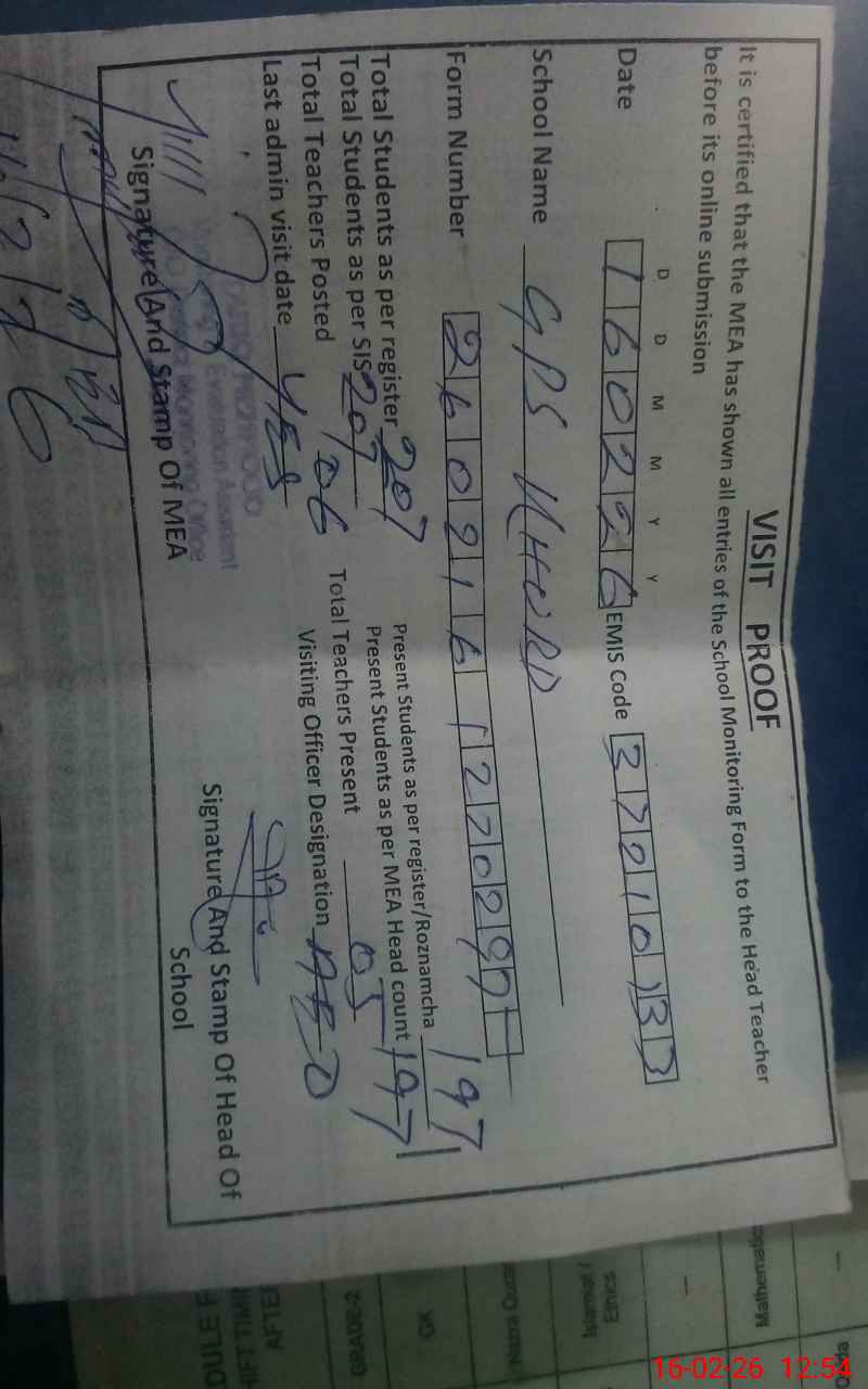 | EMIS Code: 37210133 | Name of School: GPS KHURD | |||