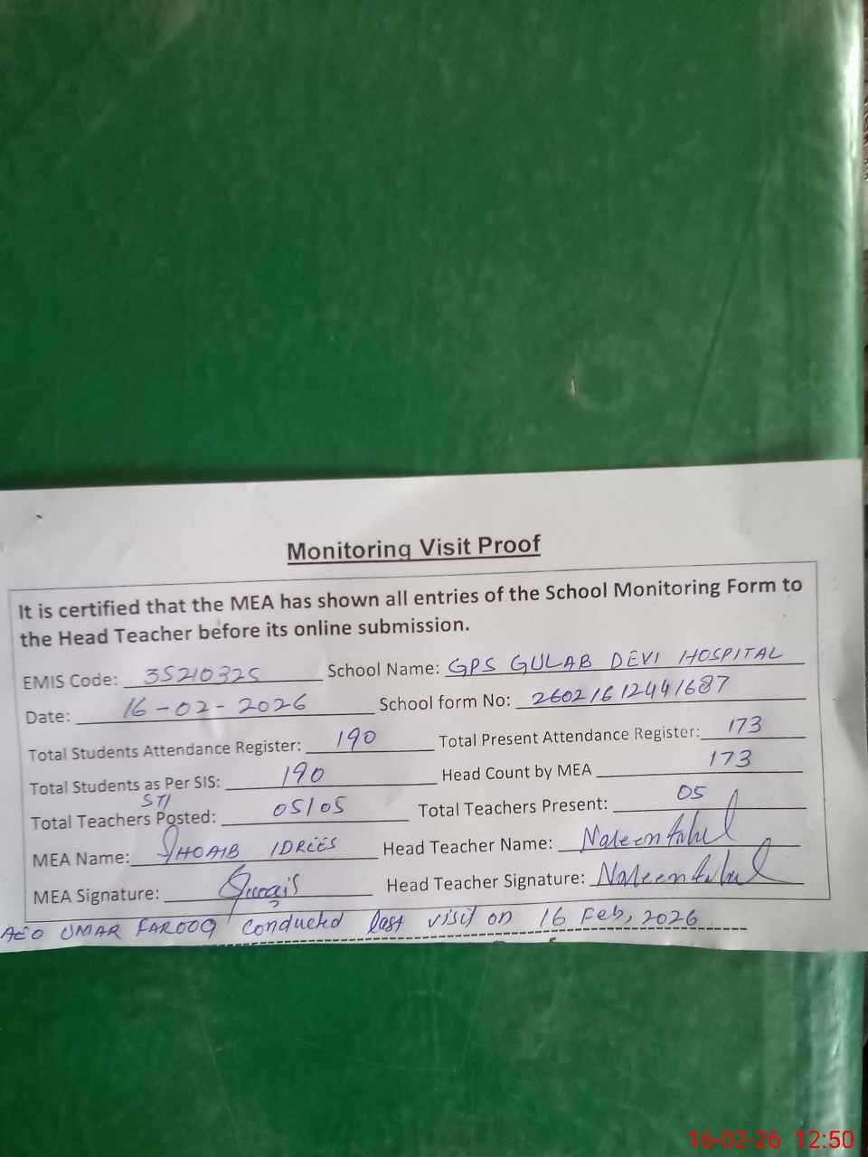 | EMIS Code: 35210325 | Name of School: GPS GULAB DEVI HOSPITAL | |||