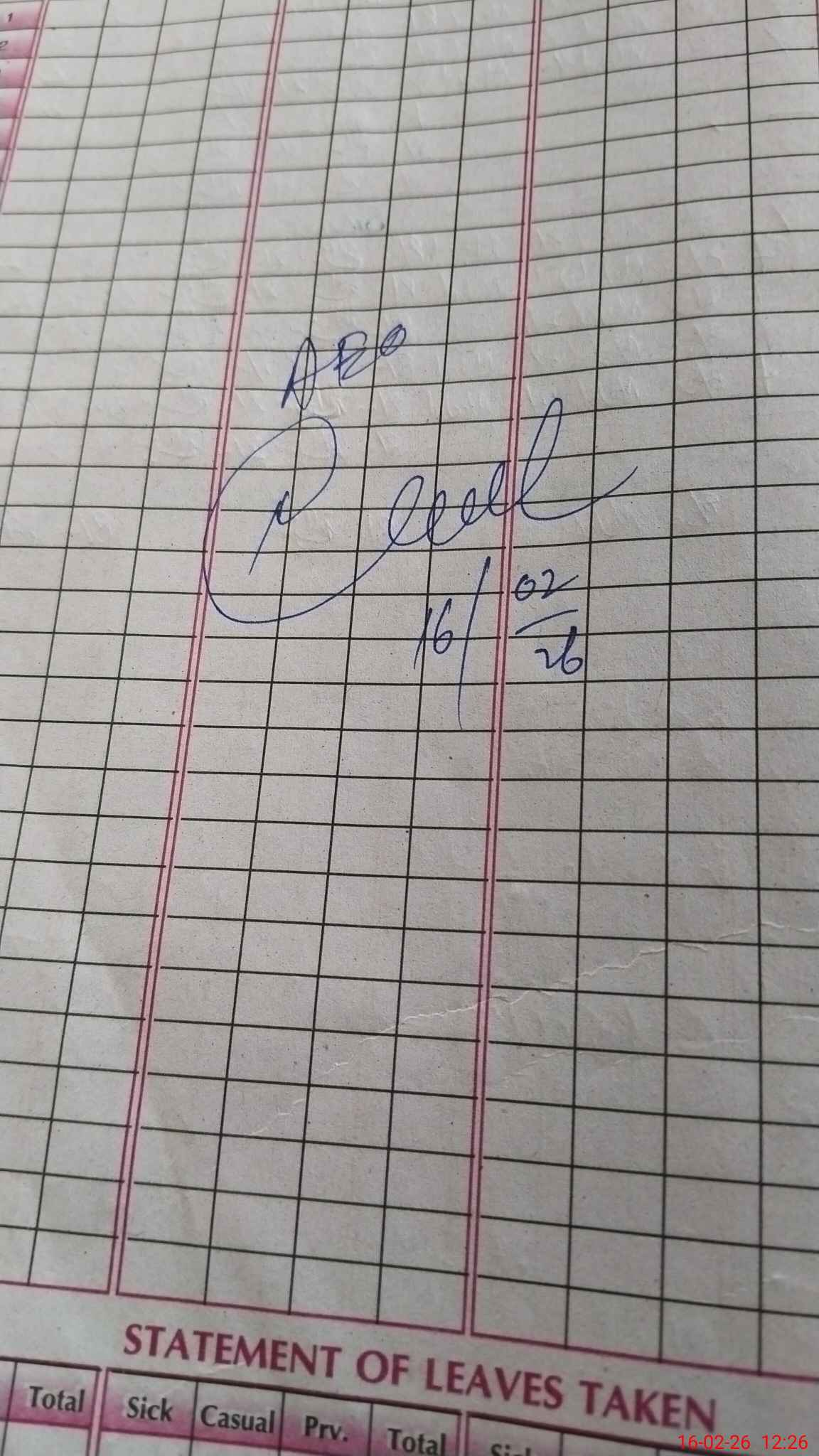 | Leave | Duty | Absent | Maternity | Medical | Ex- Pak |
