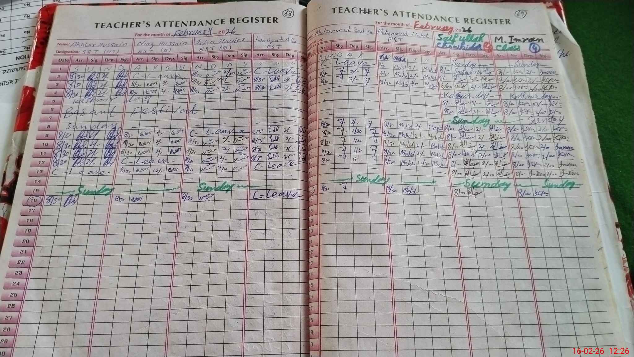| CNIC | Full Name | Designation | R/C | Absence During Last Calender Month |