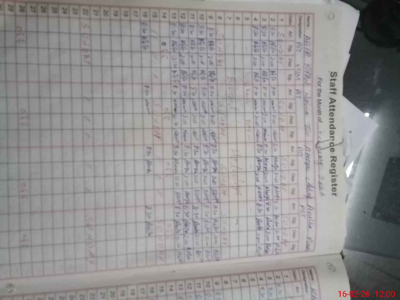 | CNIC | Full Name | Designation | R/C | Absence During Last Calender Month |