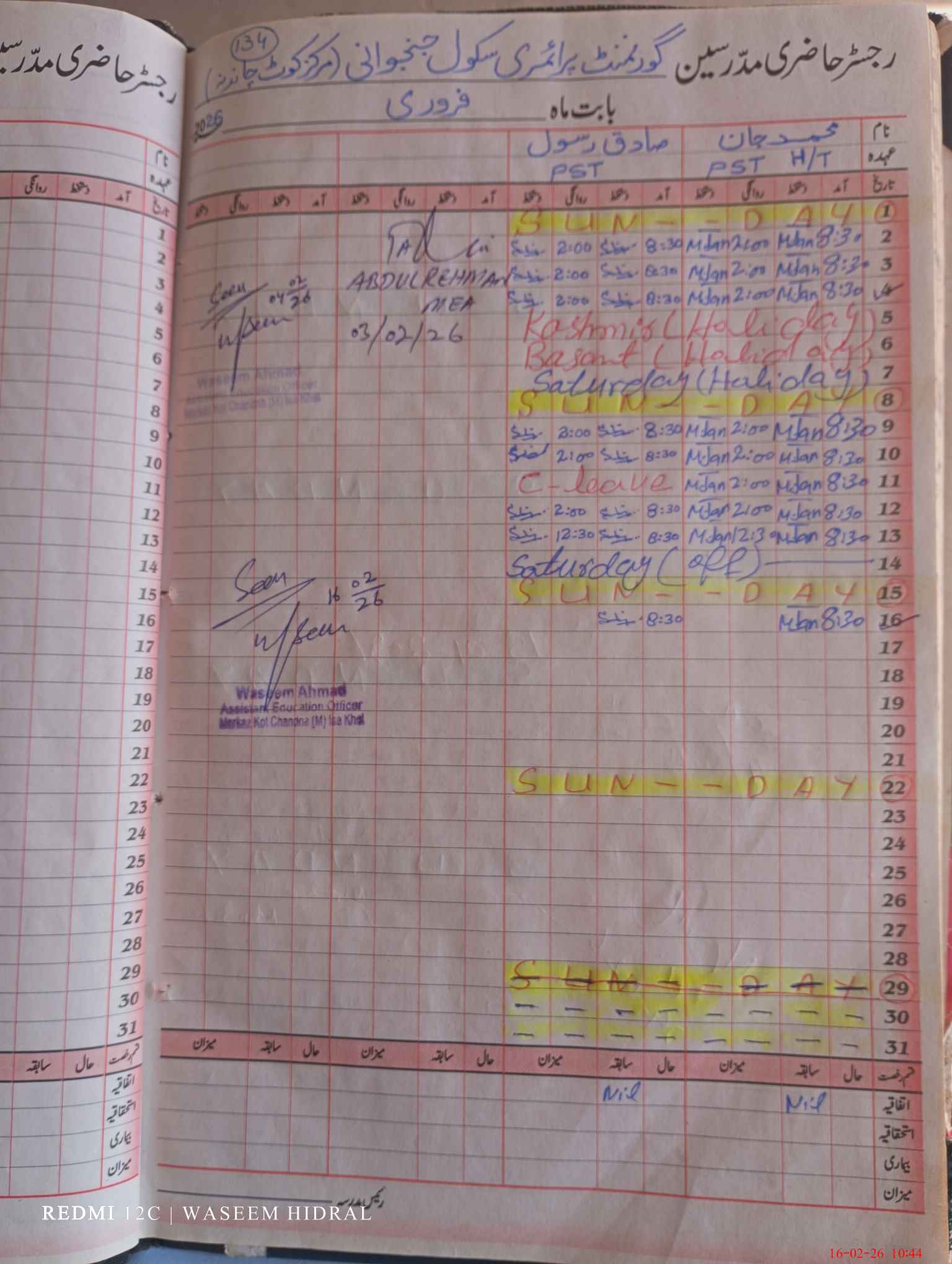 | Name: Mu**** Ja**** Designation: (School Headmaster's/Headmistress's) PST Phone/Cell Number: 03**** |