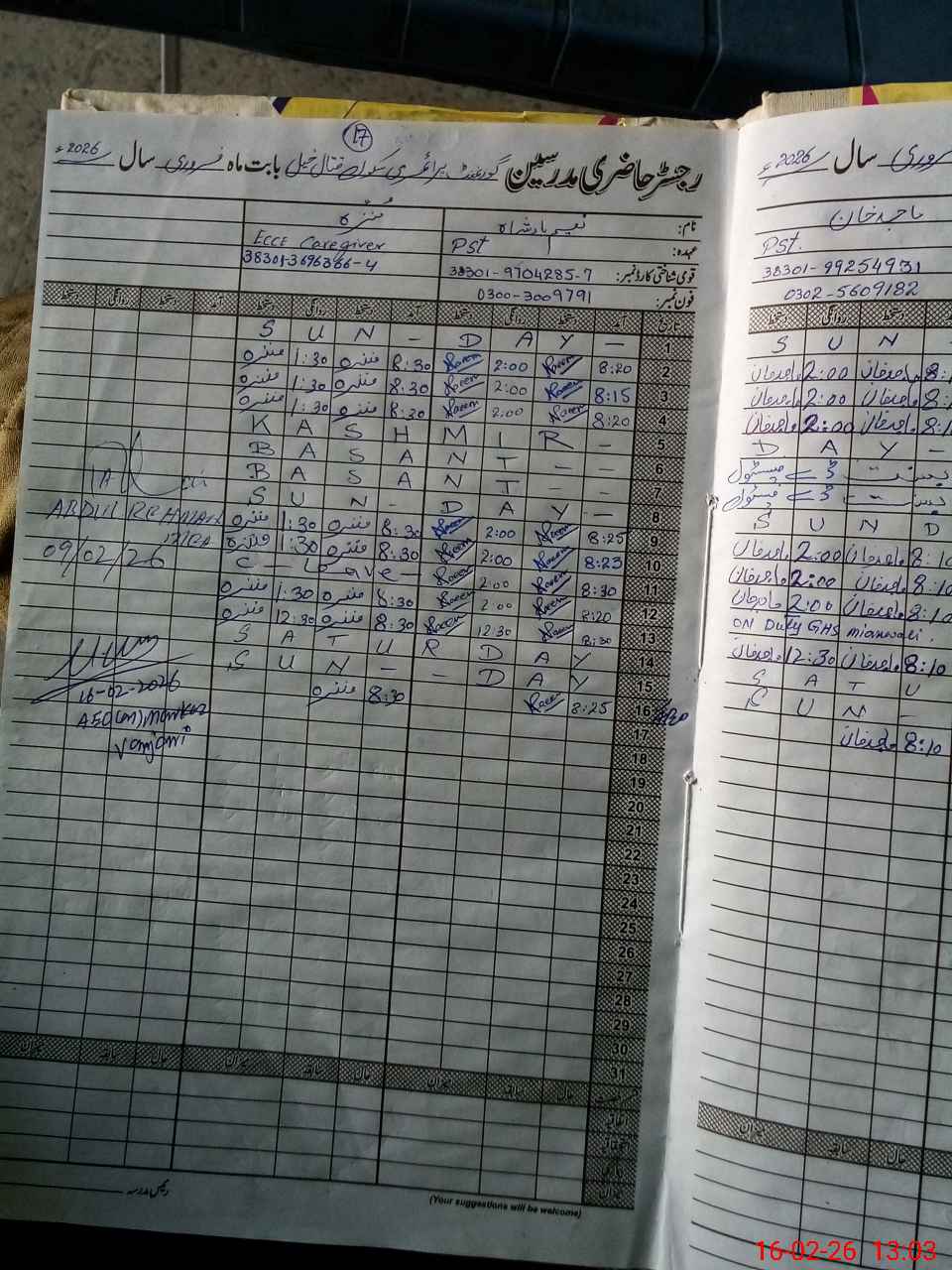 | Name: Mu**** Na**** Designation: (School Headmaster's/Headmistress's) PST Phone/Cell Number: 03**** |
