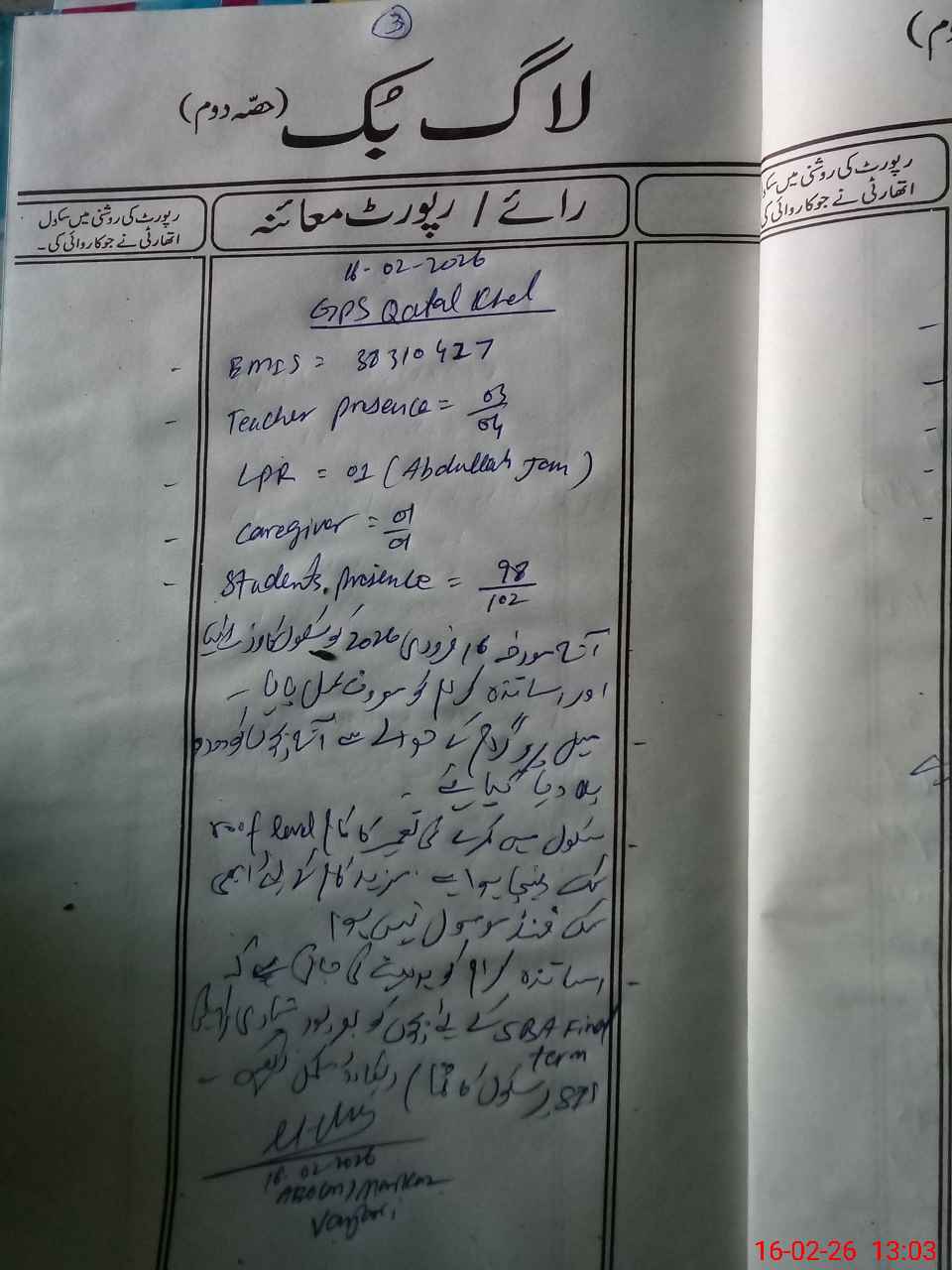 | EMIS Code: 38310427 | Name of School: GPS QATAL KHEL | |||