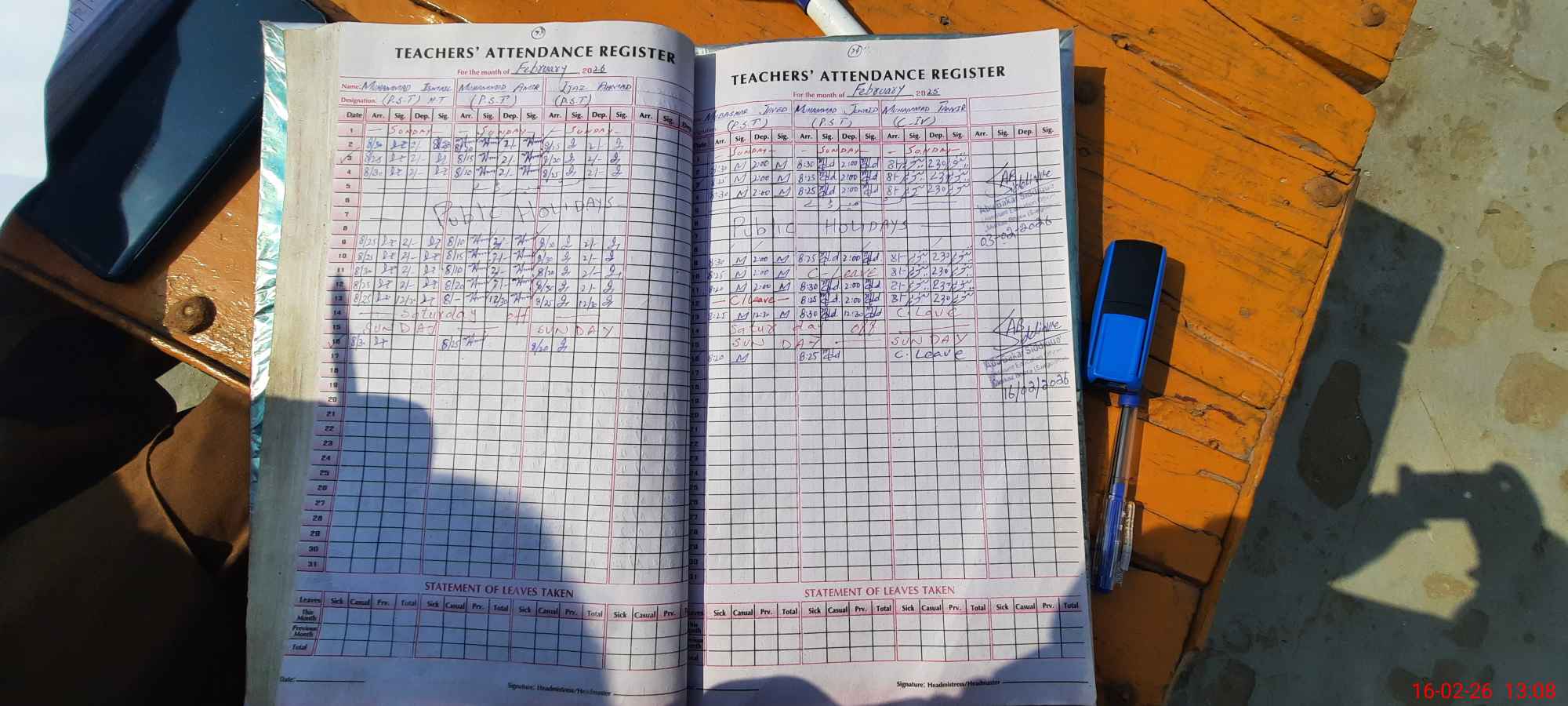 | Name: MU**** IS**** Designation: (School Headmaster's/Headmistress's) PST Phone/Cell Number: 03**** |