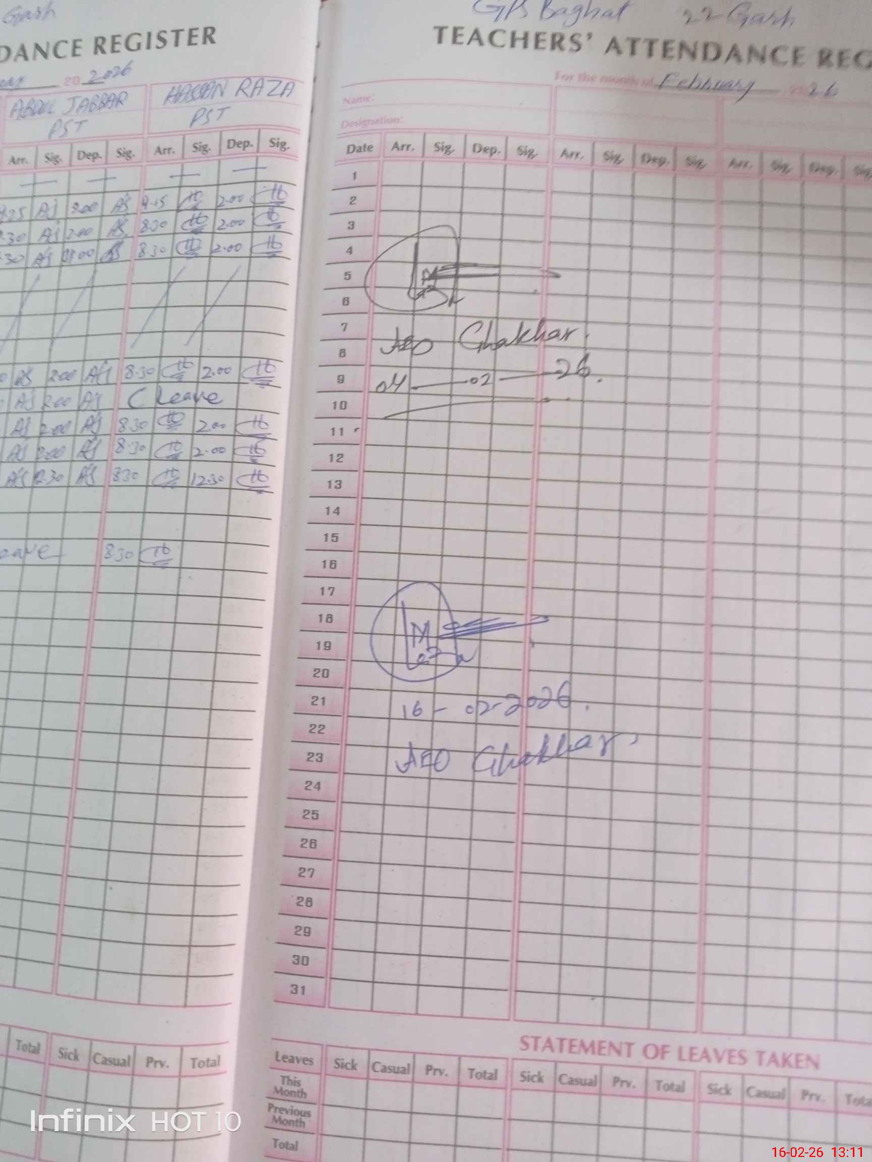 | Leave | Duty | Absent | Maternity | Medical | Ex- Pak |
