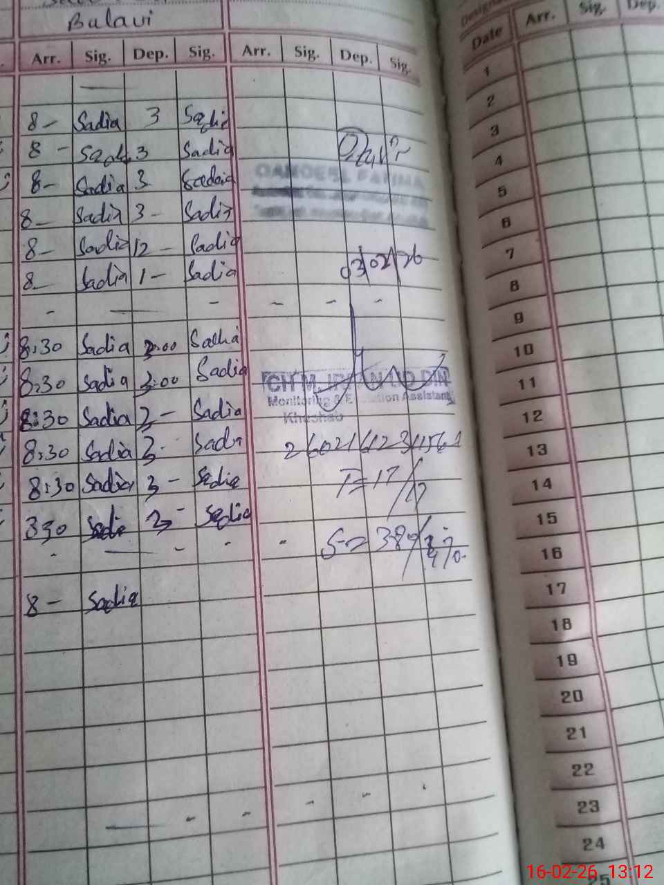 | Monitoring Date: 16-02-2026 | Start Time: 16-02-2026 12:31 PM | End Time: 16-02-2026 01:12 PM | Name of MEA: MU**** IR**** UDDI**** | |