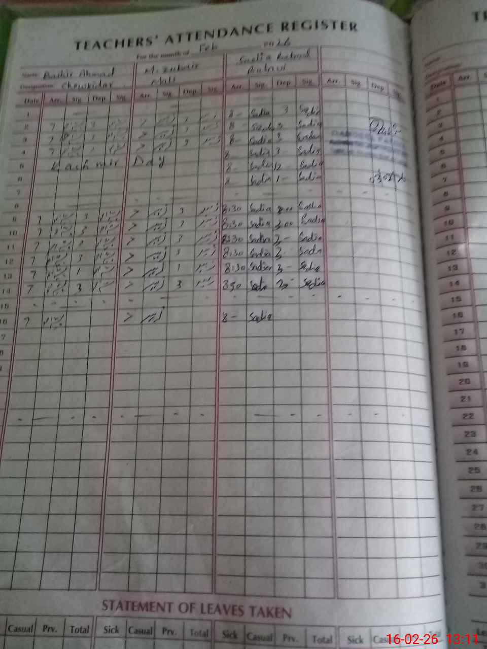 | Remarks (Use Separate Page if Required): gghs khura student on sis 470 student on register 470 head count 380 no teacher absent last visit 3 Feb aeo | |||||