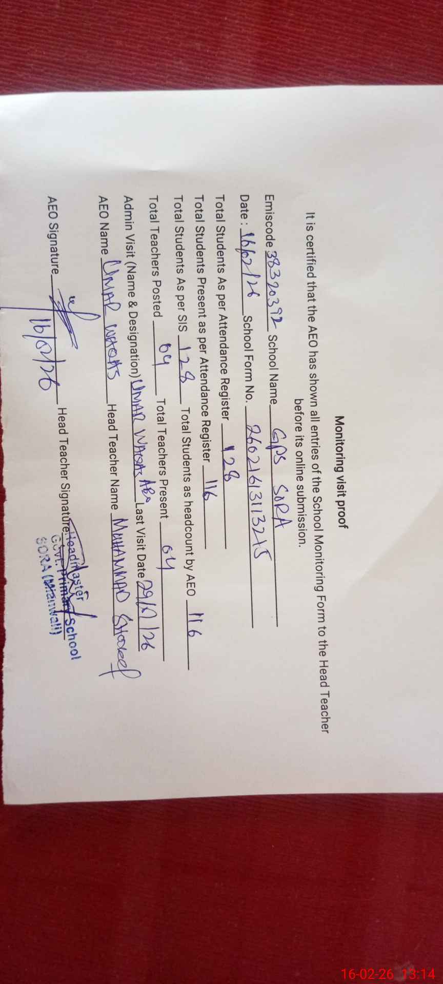 | EMIS Code: 38320392 | Name of School: GPS SORA | |||