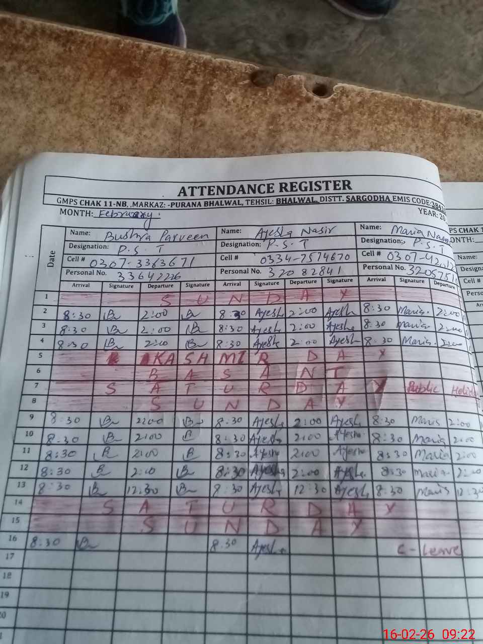 | Name: Bu**** Pa**** Designation: (School Headmaster's/Headmistress's) PST Phone/Cell Number: 03**** |