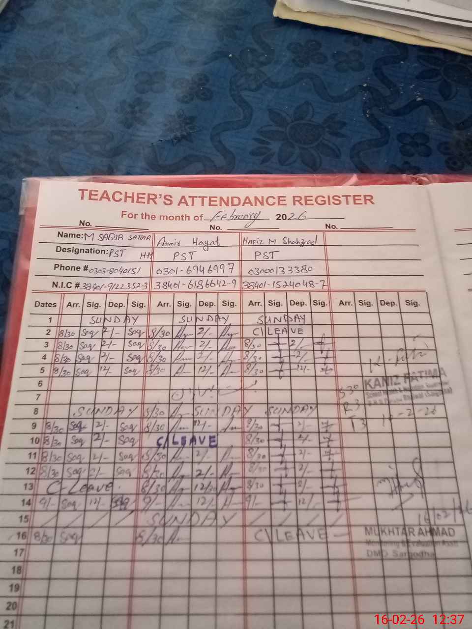 | Name: Mu**** Sa**** Sa**** Designation: (School Headmaster's/Headmistress's) PST Phone/Cell Number: 03**** |