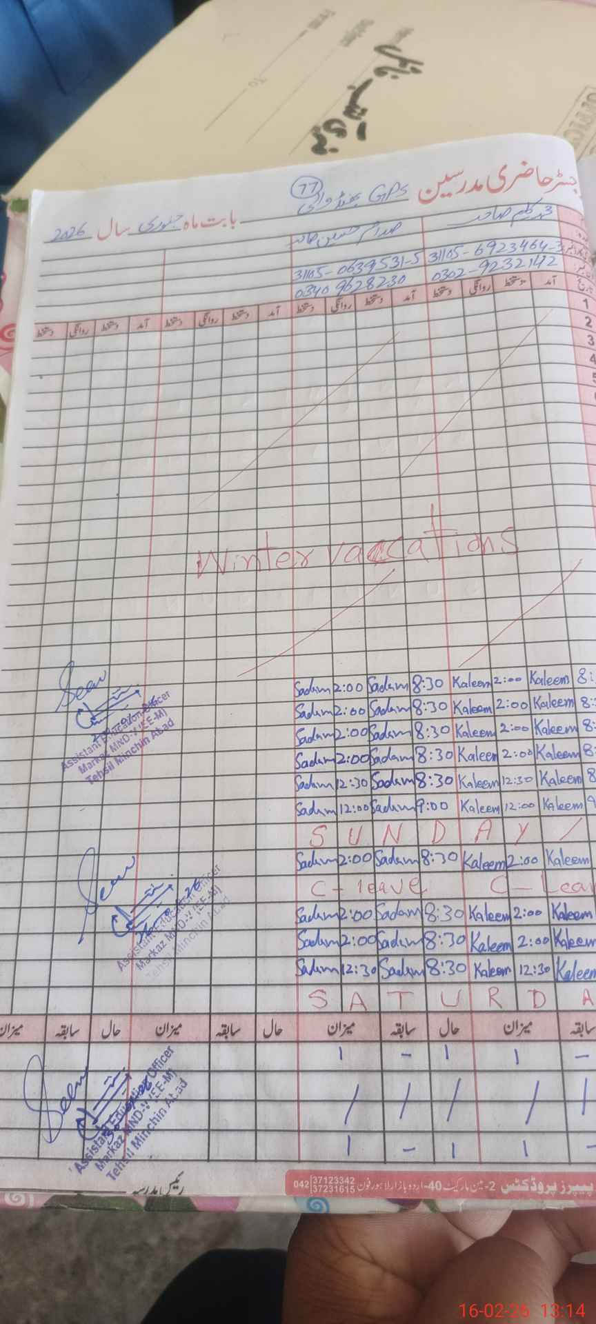 | Name: Mu**** Ab**** Designation: (School Headmaster's/Headmistress's) PST Phone/Cell Number: 03**** |