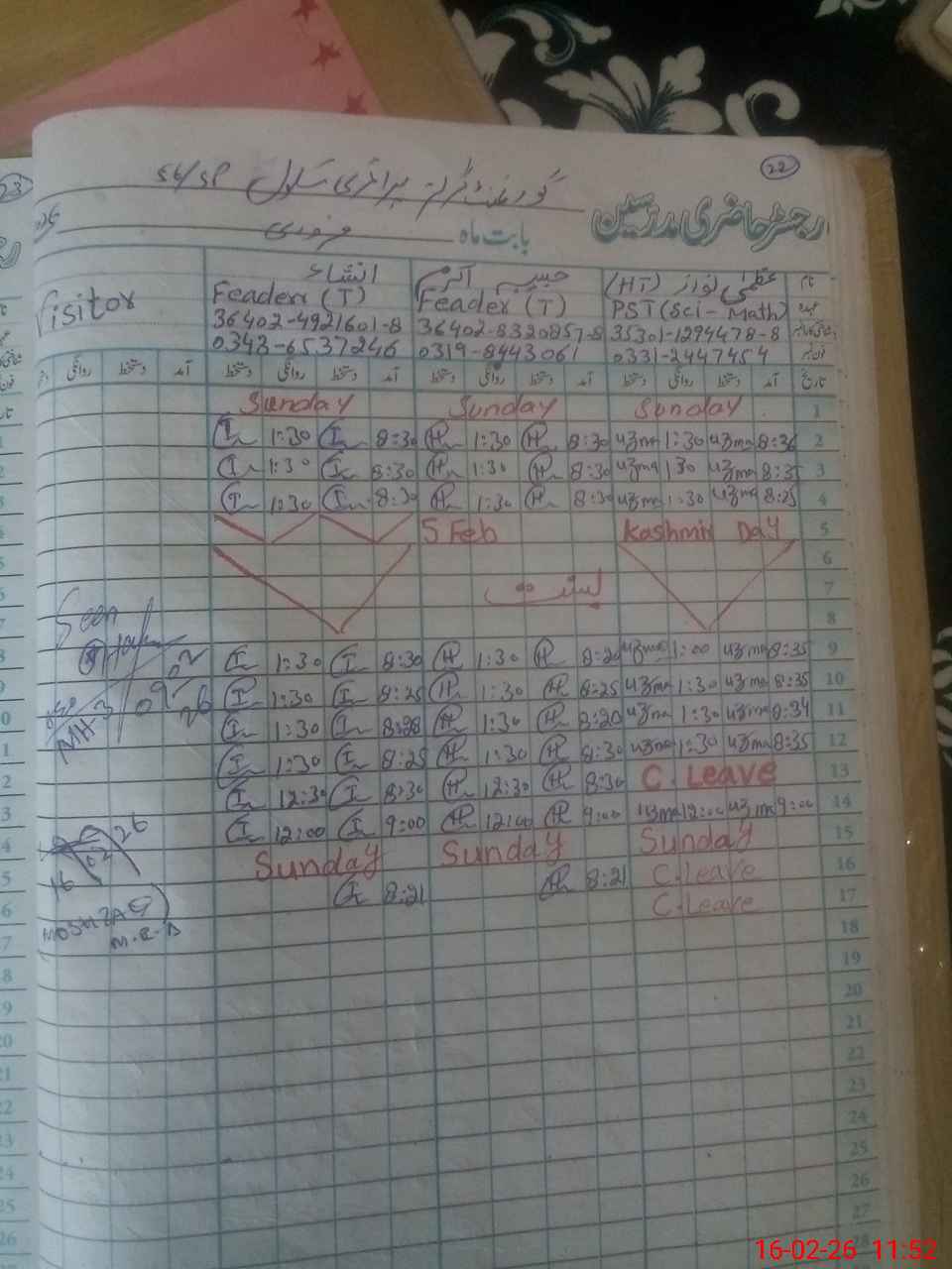 | Name: Uz**** Na**** Designation: (School Headmaster's/Headmistress's) PST Phone/Cell Number: 03**** |