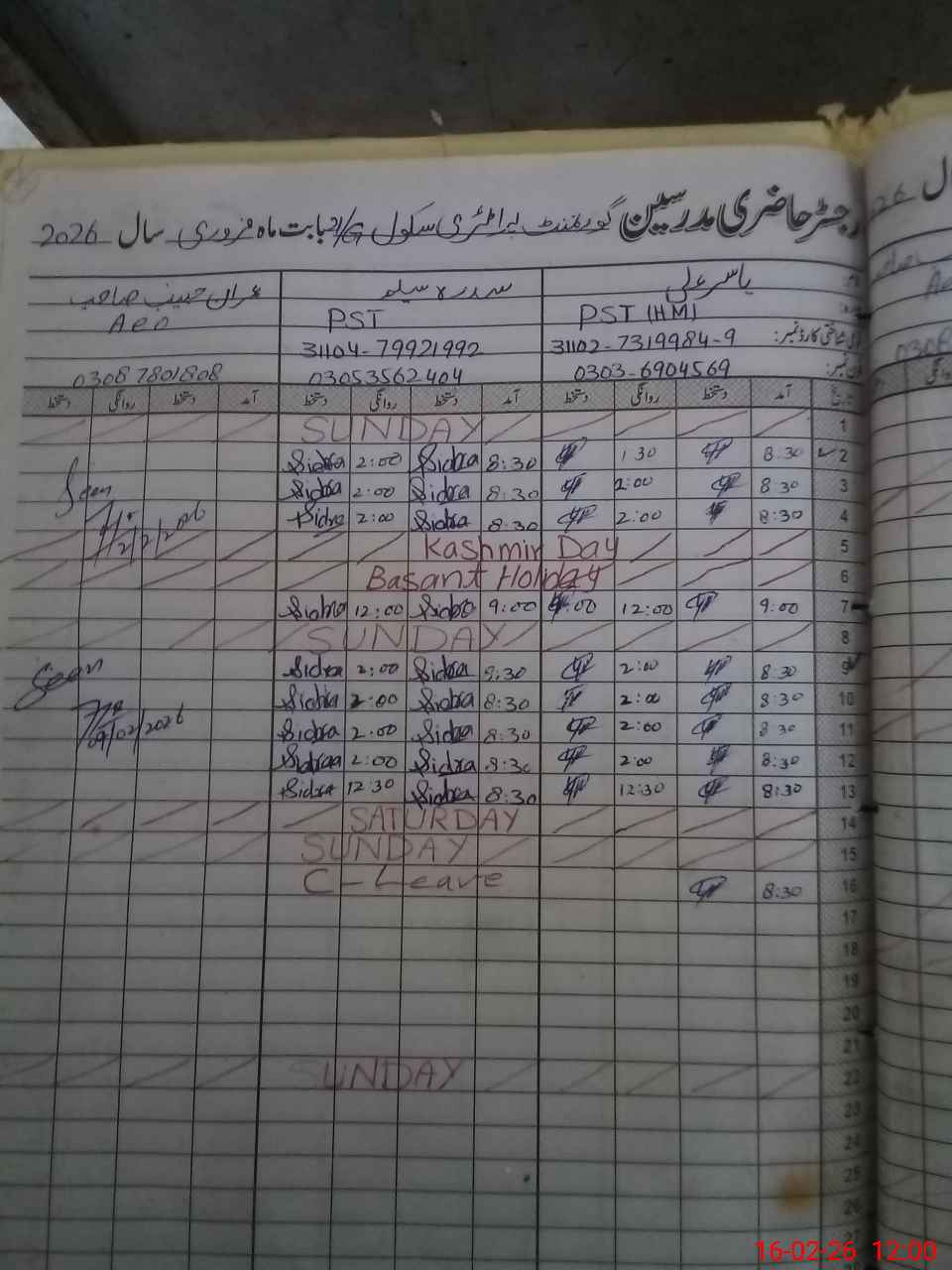 | 31**** | Si**** Sa**** | ESE Science | Contract | 2 | 0 | 0 | 0 | 0 | 0 | 0 | 0 | 2 | Casual |