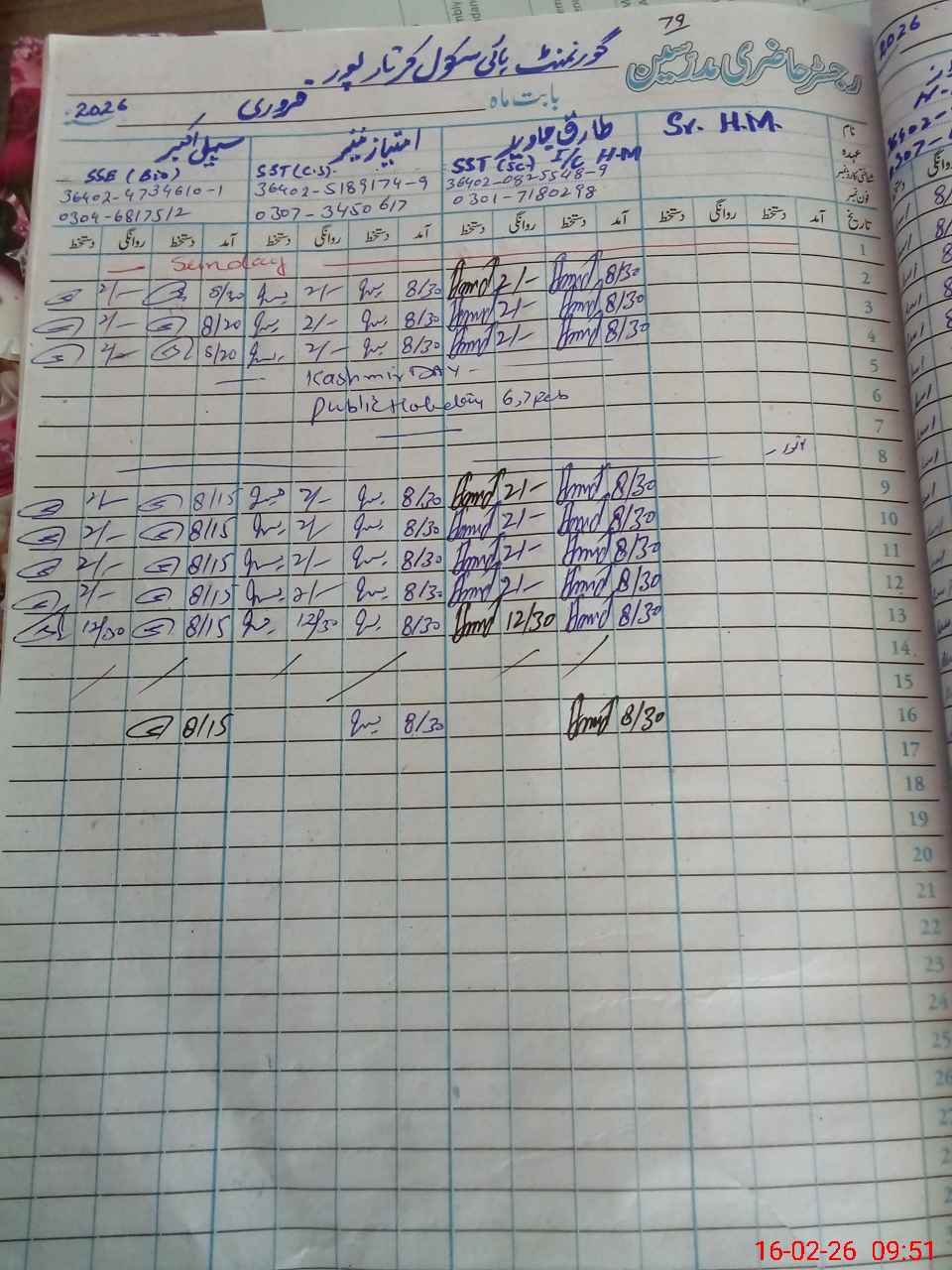 | Name: Ta**** Ja**** Designation: (School Headmaster's/Headmistress's) SST Phone/Cell Number: 03**** |