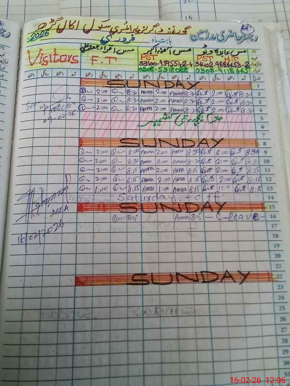 | Leave | Duty | Absent | Maternity | Medical | Ex- Pak |