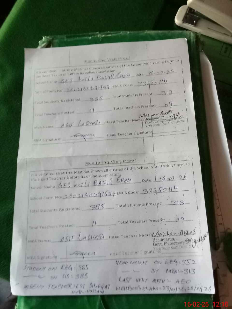 | EMIS Code: 33250114 | Name of School: GES KOTLI BAQIR SHAH | |||