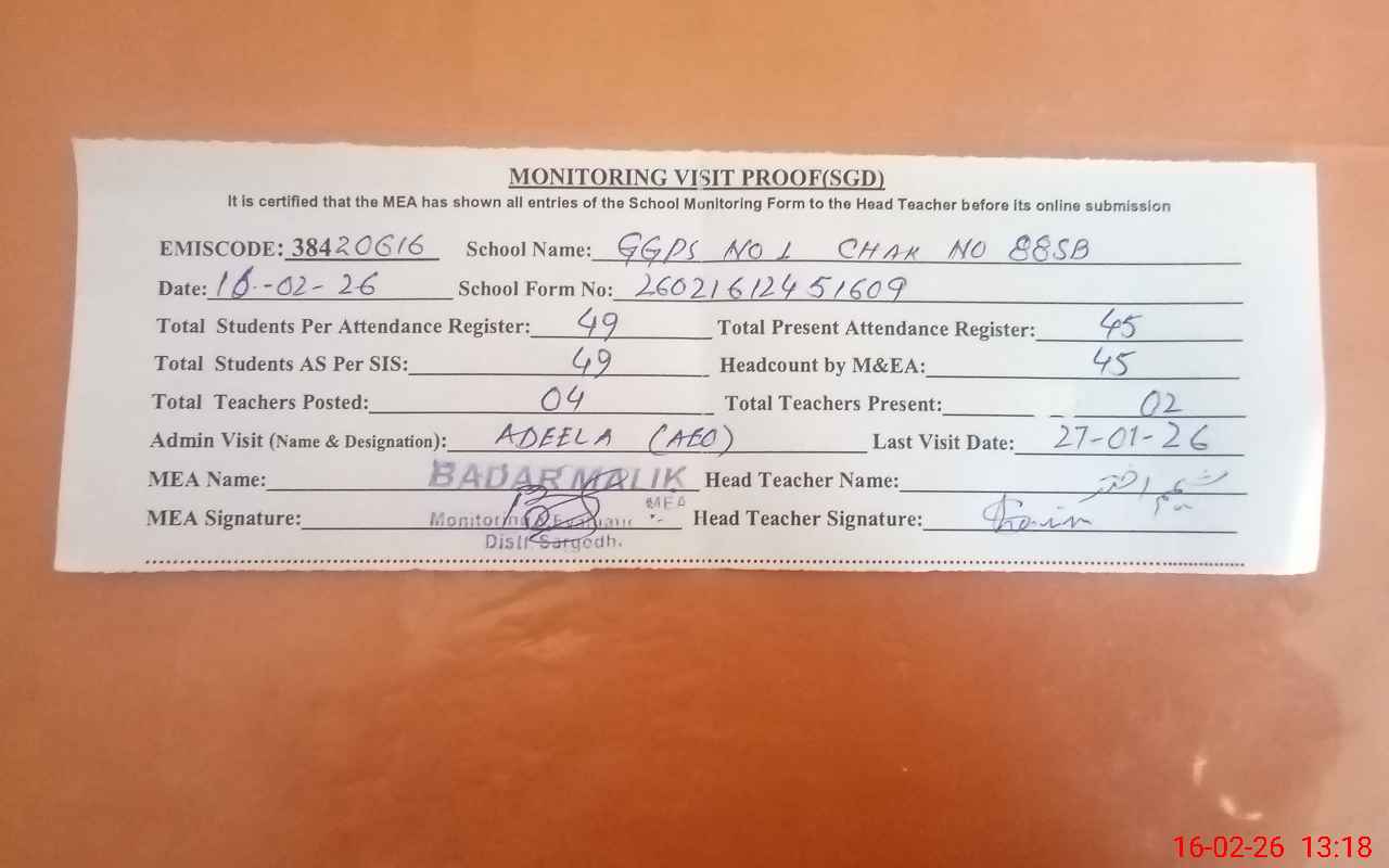 | EMIS Code: 38420616 | Name of School: GGPS NO.1 CHAK NO.88 SB | |||