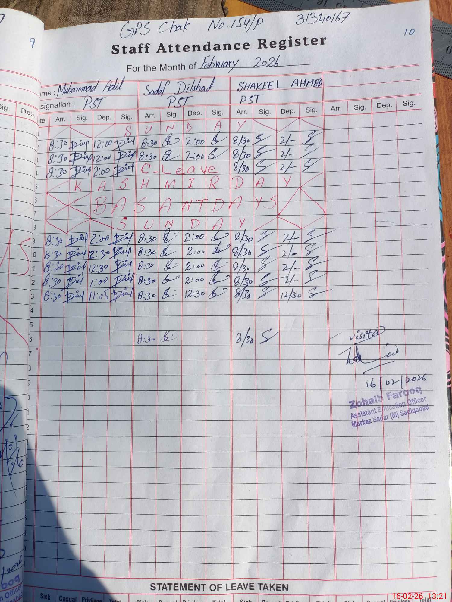 | EMIS Code: 31340167 | Name of School: GPS CHAK NO 154/P | |||