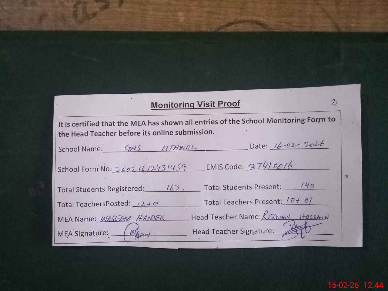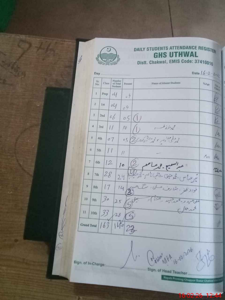 | EMIS Code: 37410016 | Name of School: GHS UTHWAL CHAKWAL | |||