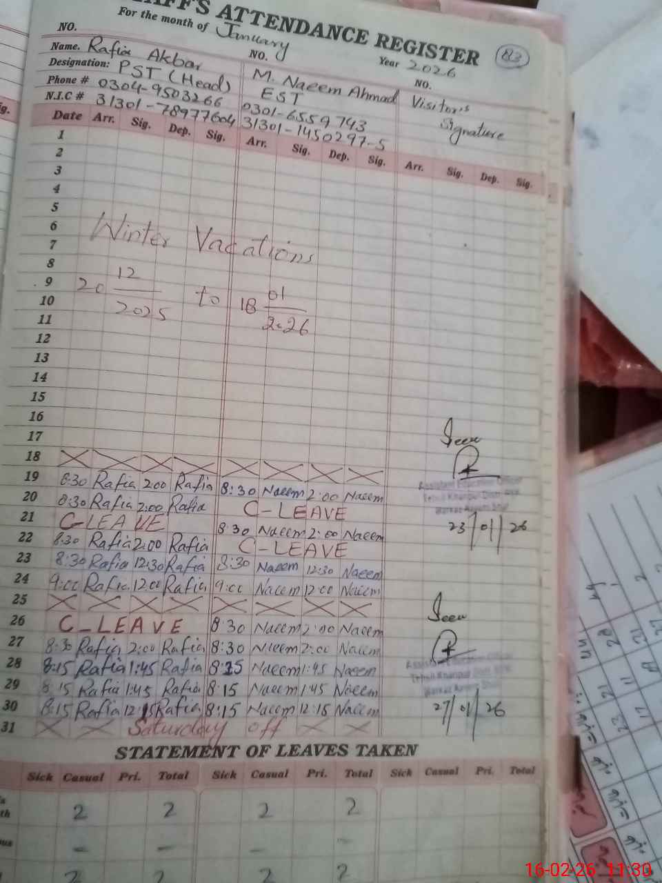 | Name: Ra**** Ak**** Designation: (School Headmaster's/Headmistress's) PST Phone/Cell Number: 03**** |