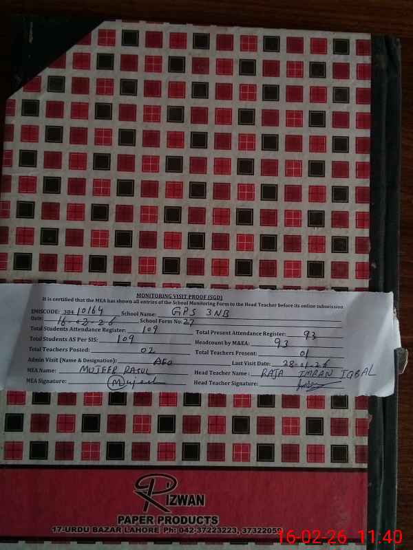 | EMIS Code: 38410164 | Name of School: GPS CHAK NO.3 NB | |||