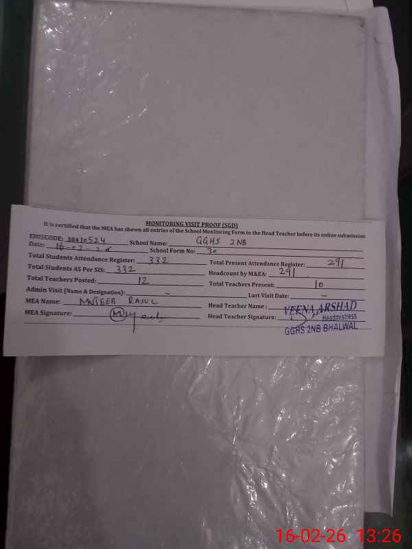 | EMIS Code: 38410524 | Name of School: GGHS CHAK NO.2 NB | |||