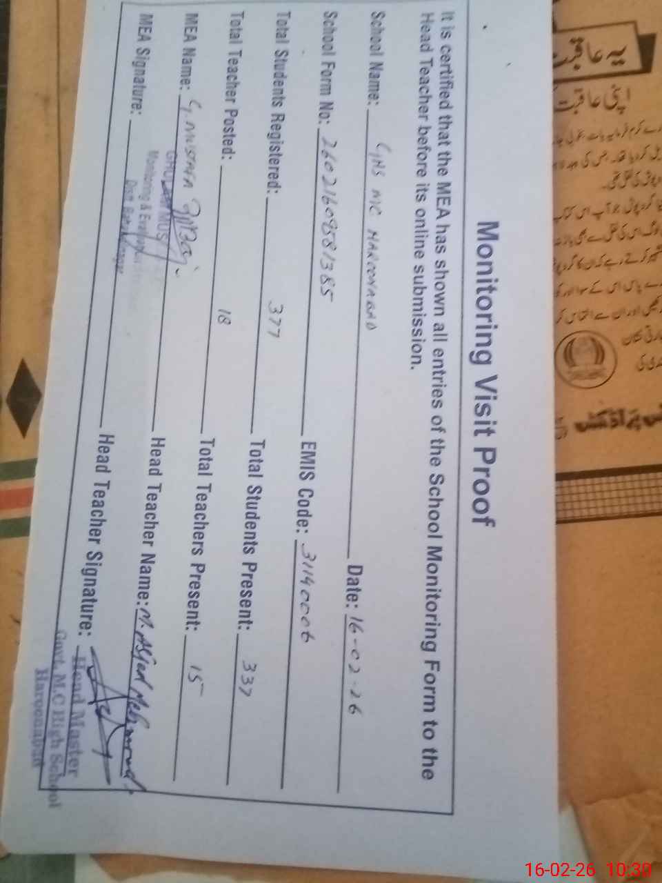 | EMIS Code: 31140006 | Name of School: GHS MC HAROON ABAD | |||