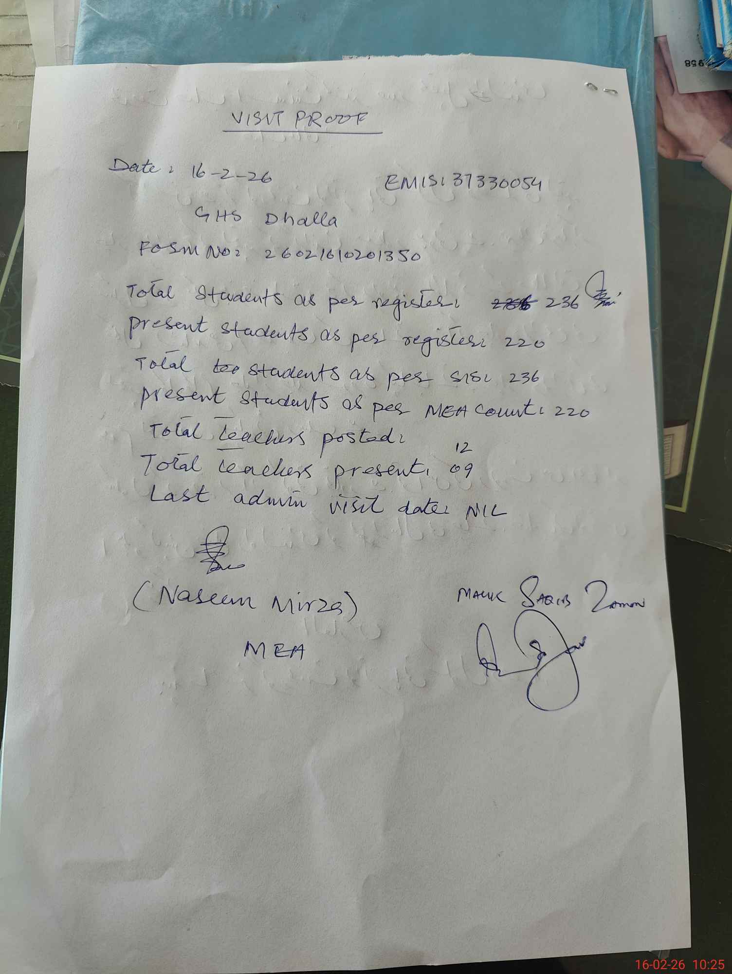 | EMIS Code: 37330054 | Name of School: GHS DHALLA | |||