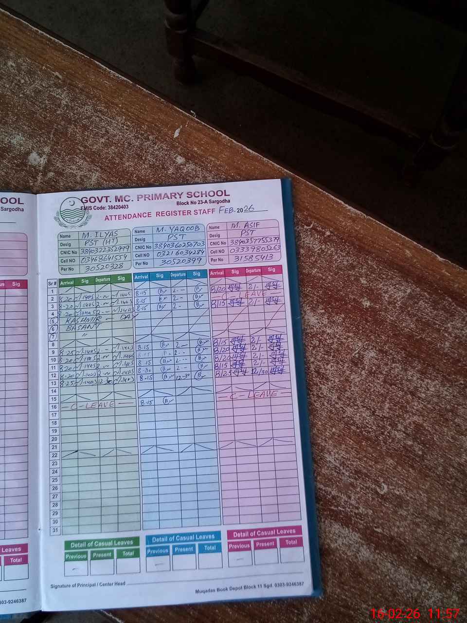 | EMIS Code: 38420403 | Name of School: GPS MC BLOCK NO.23-A SARGODHA | |||