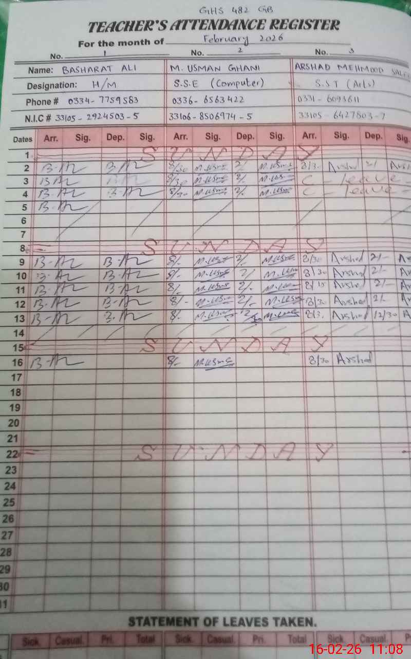 | EMIS Code: 33130289 | Name of School: GHS CHAK NO.482/GB | |||