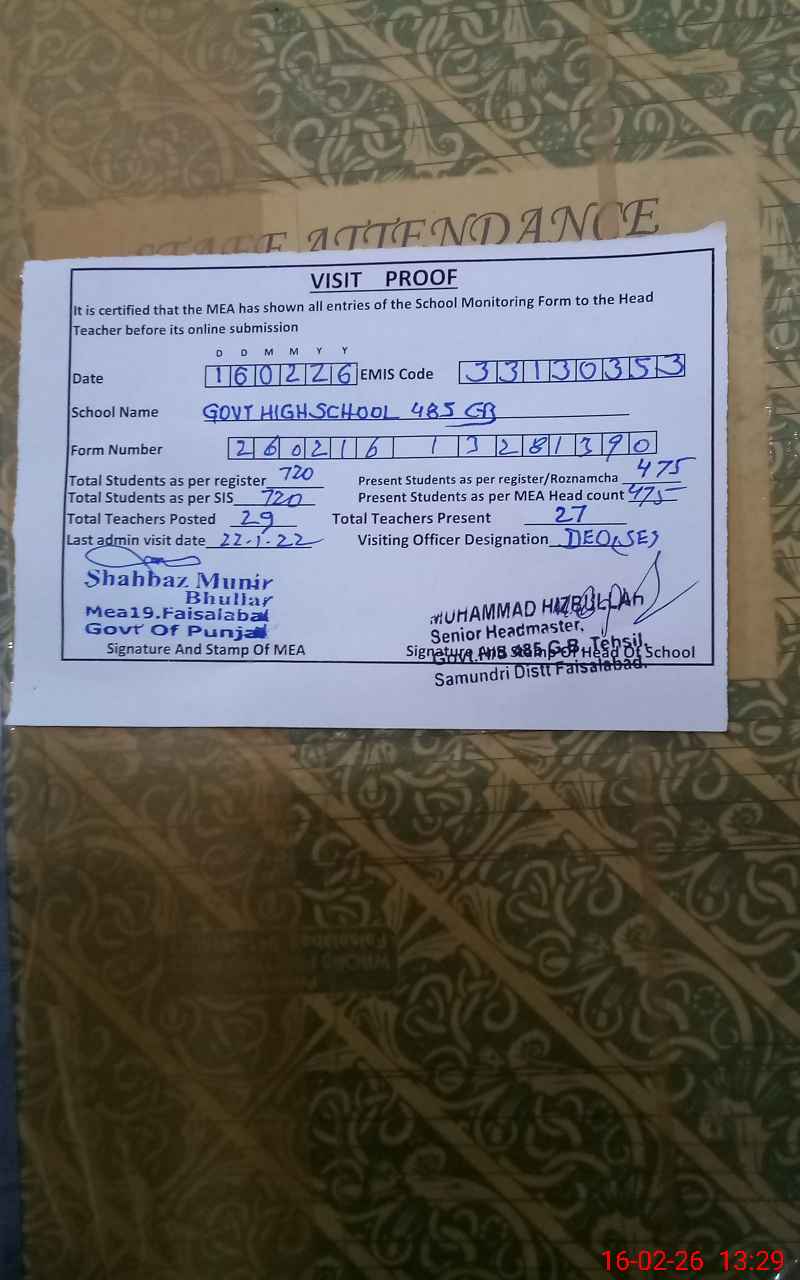 | EMIS Code: 33130353 | Name of School: GHS CHAK 485 GB SAMUNDRI FSD | |||