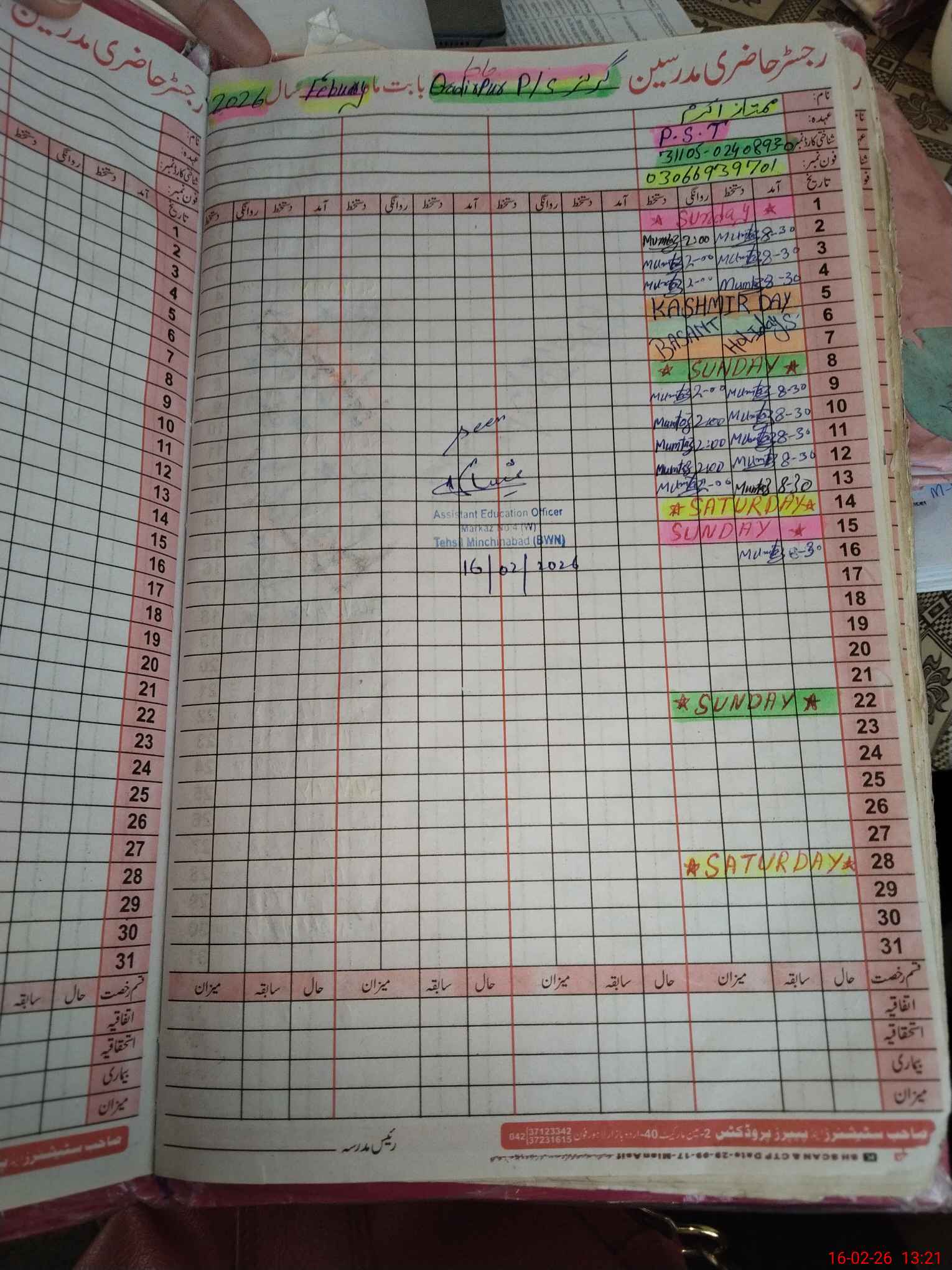 | Name: Mu**** Ak**** Designation: (School Headmaster's/Headmistress's) PST Phone/Cell Number: 03**** |
