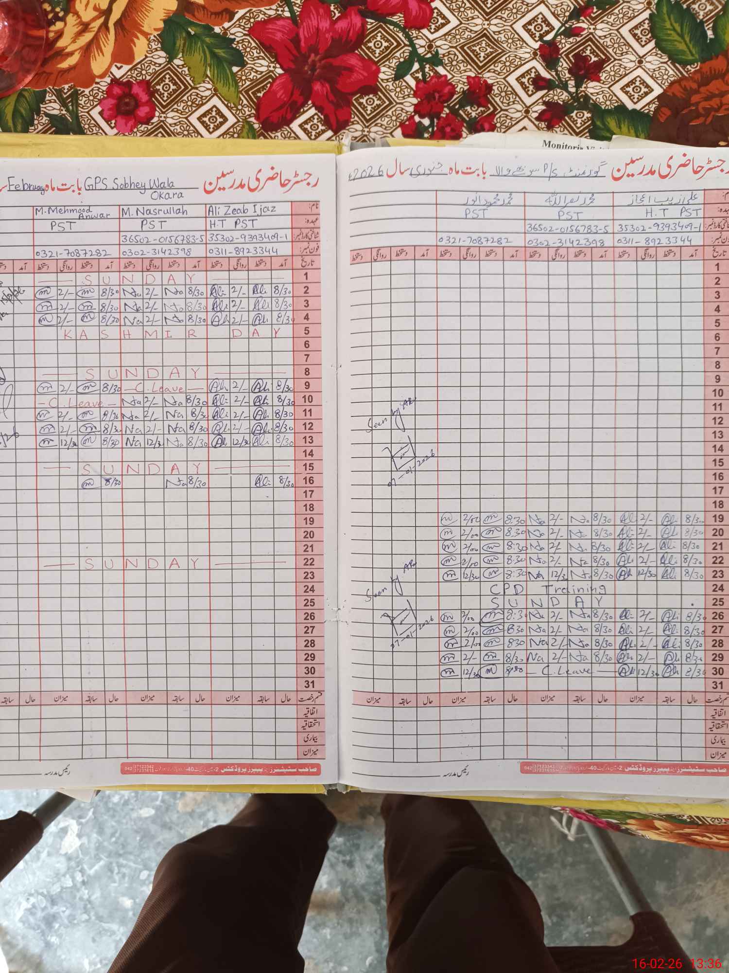 | CNIC | Full Name | Designation | R/C | Absence During Last Calender Month |